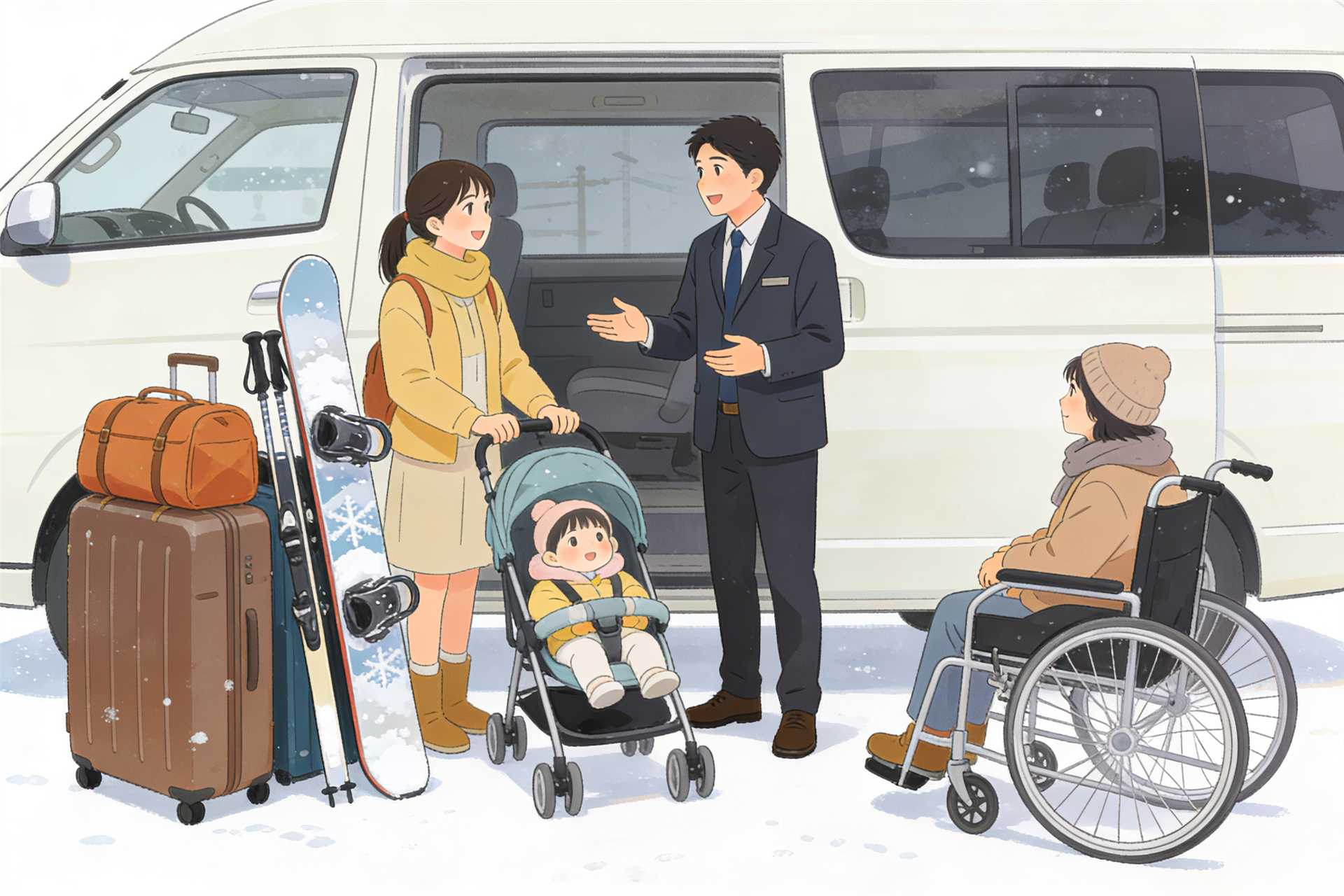 當旅途路線較為分散、同行有長輩或小孩需要照顧,或者攜帶大型行李和雪具出門時,